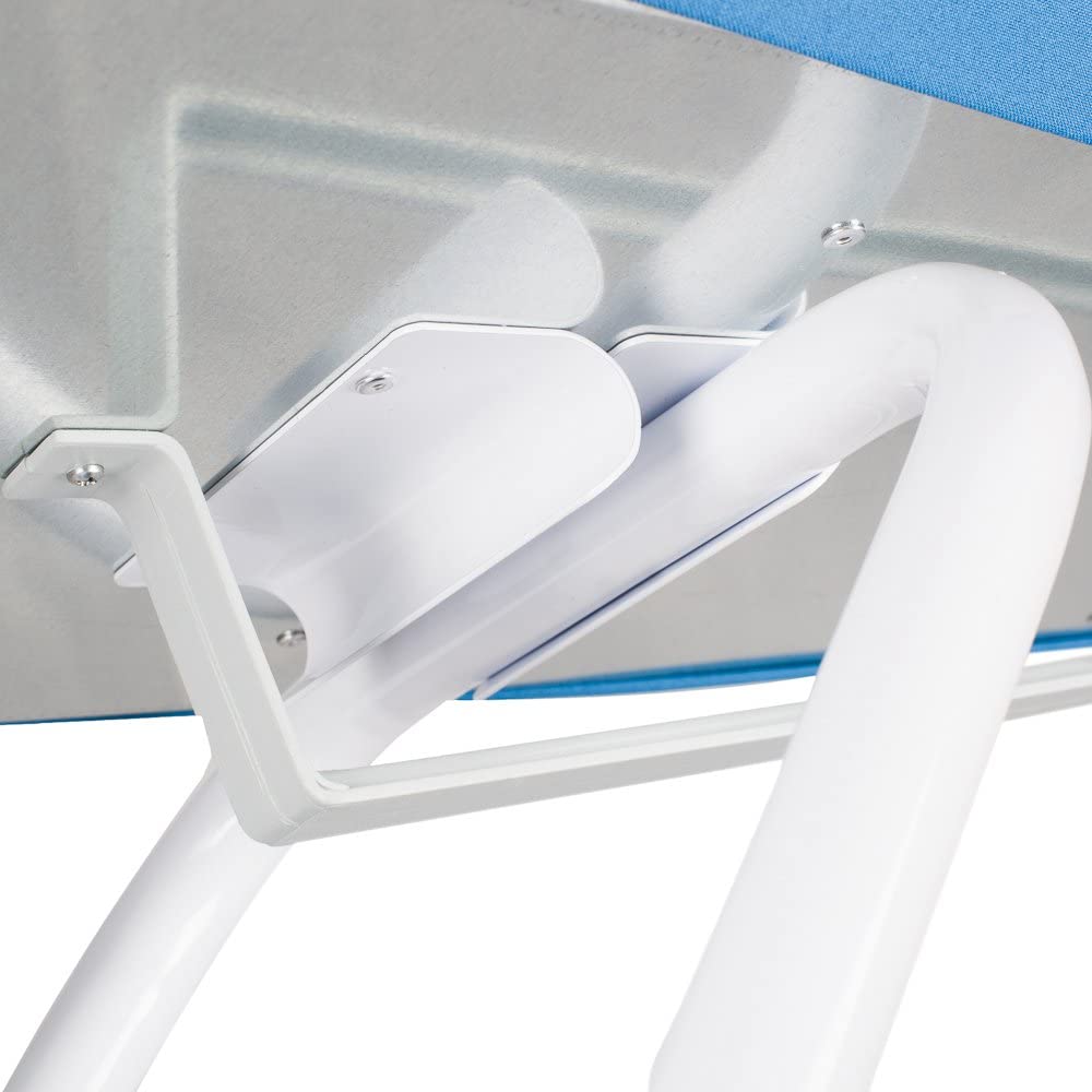 Le plan de travail a hauteur réglable et sa structure solide lui donne robustesse et stabilité. En dessous du plan, un pratique et large support à linge.