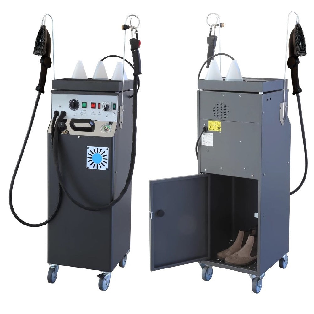 Generatore di vapore professionale, potente e affidabile (pressione vapore 5 bar), per la pulizia esterna ed interna di scarpe, borse, accessori, caschi moto e molto altro.