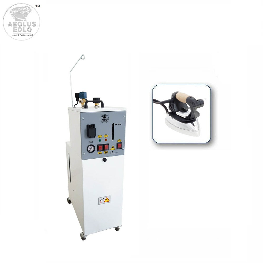 Des éléments essentiels pour un usage en tout confort sont prévus : une tige en acier pour soutenir le tuyau vapeur, repose-fer, une base à roulettes, un réservoir à eau de 10 litres, un voyant vapeur prête et deux interrupteurs d’allumage étanche (pour activer indépendamment le fer ou la chaudière).