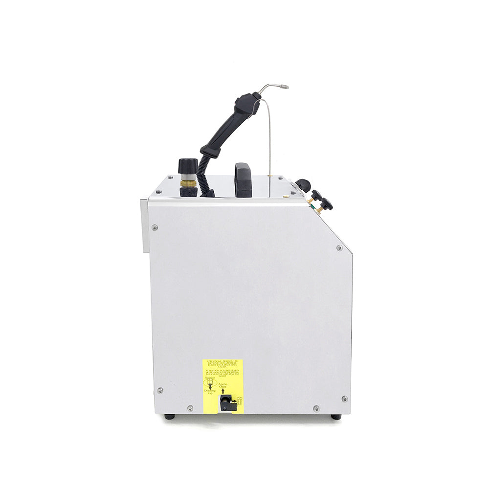 Dotato di pistola a due vie acqua/vapore con beccuccio di precisione con doppio comando: uscita vapore secco e uscita acqua calda a 95°C, e tanica esterna.