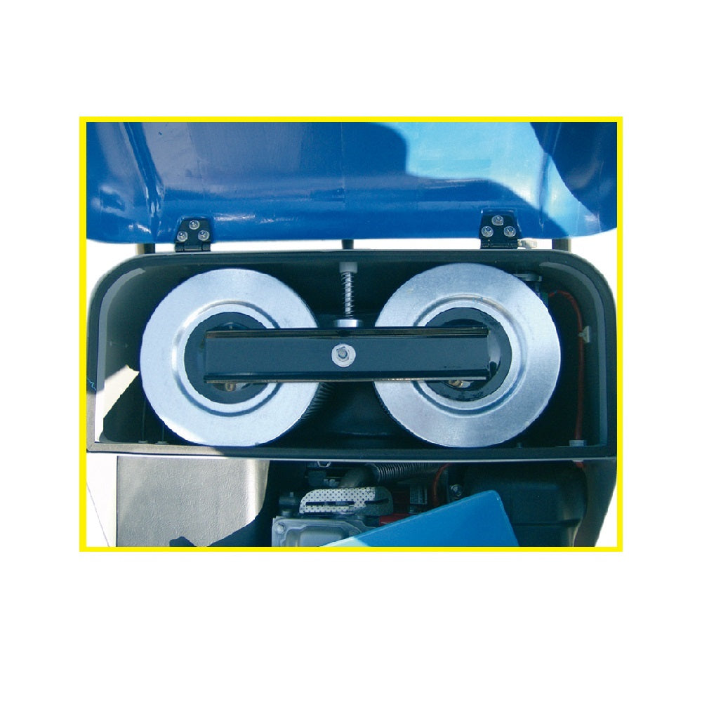 La machine dispose d’une brosse rotative placée à l'avant sur le côté de la balayeuse qui ramasse la saleté et l’aspire vers le centre de la machine. La brosse centrale, à l'aide du moteur d'aspiration, pousse la saleté vers le bac récupérateur.