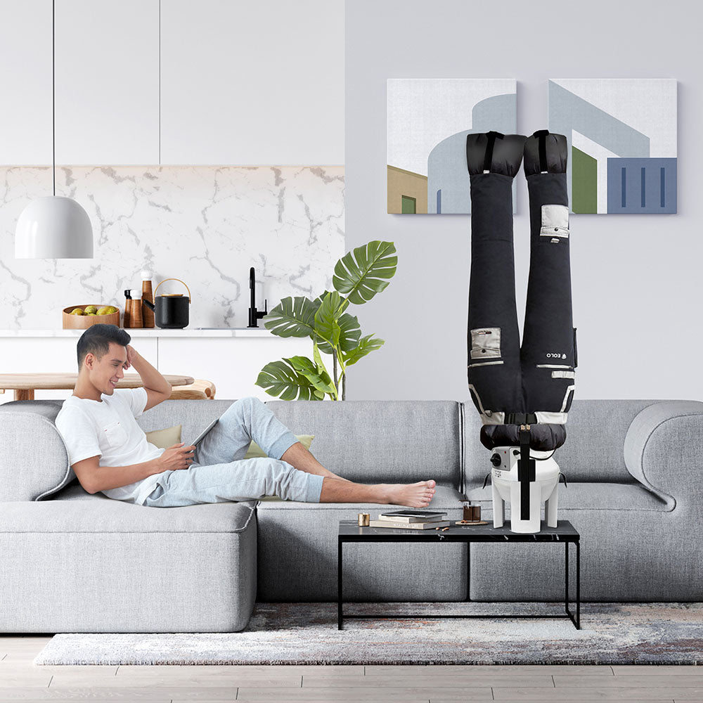 Asciuga e stira contemporaneamente e in automatico indumenti umidi, come pantaloni, jeans, bermuda, pantaloni sportivi, pantaloni militari, ... dalla taglia XS alla taglia 3XL. Con aria calda rinfresca e toglie i cattivi odori a pantaloni, jeans, pantaloni sportivi, pantaloni militari, ... e consente di stirare comodamente in verticale indumenti asciutti con l'ausilio di un ferro da stiro.