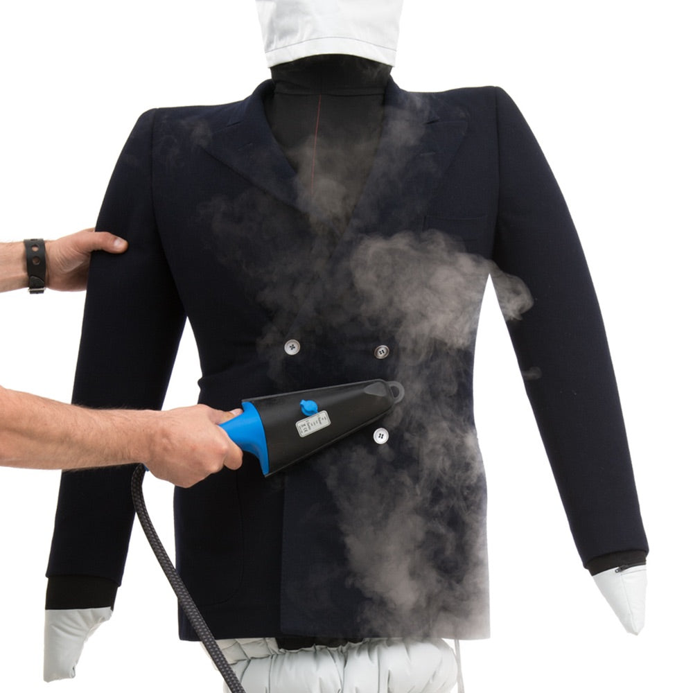 Con aria fredda rinfresca e toglie i cattivi odori a giacche, cappotti, giubbotti, ... e consente di stirare in verticale indumenti asciutti con l’ausilio di un ferro da stiro.