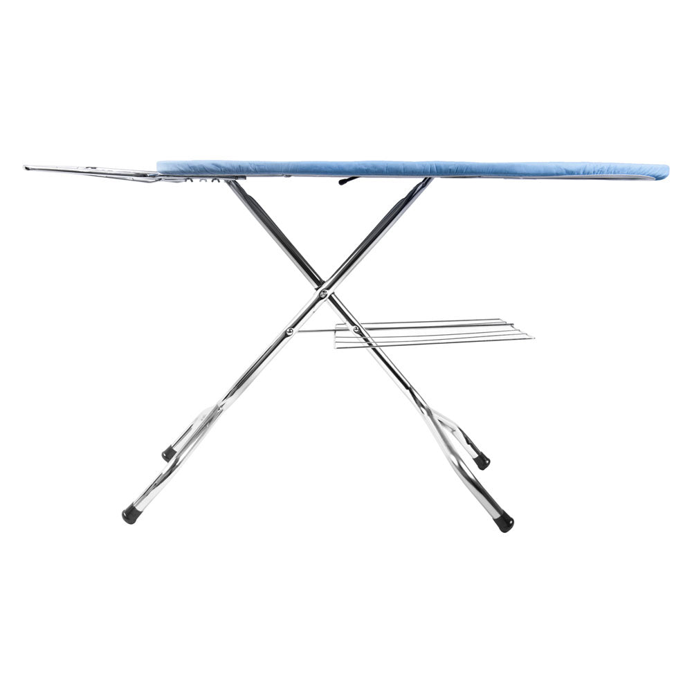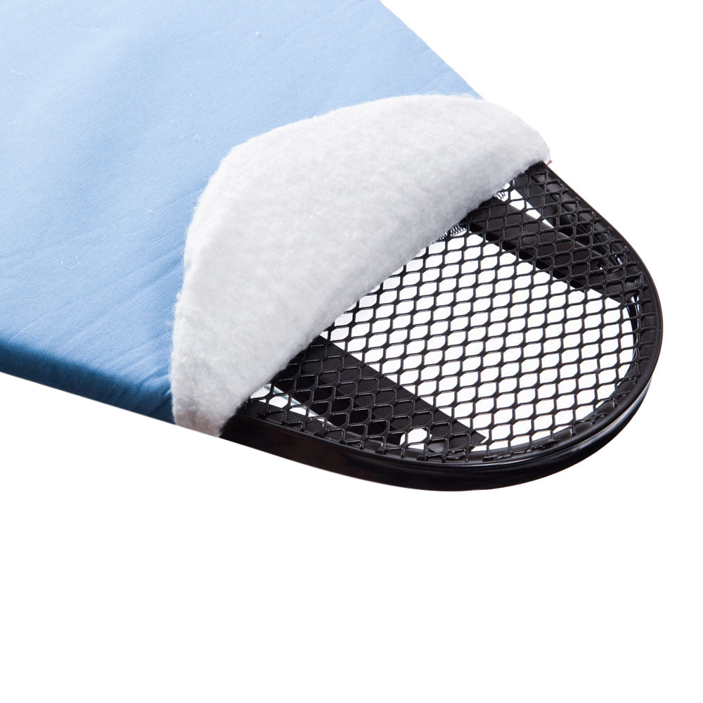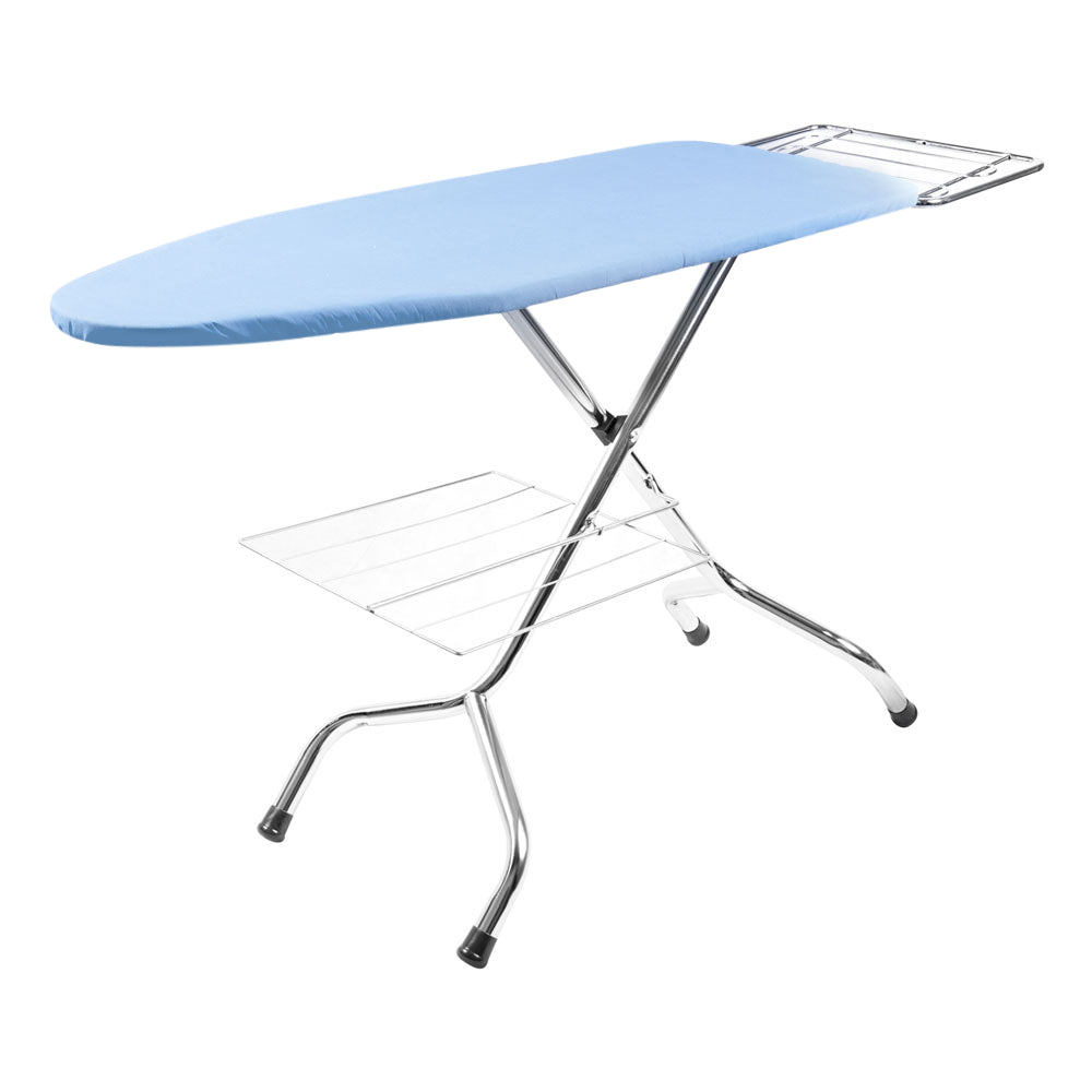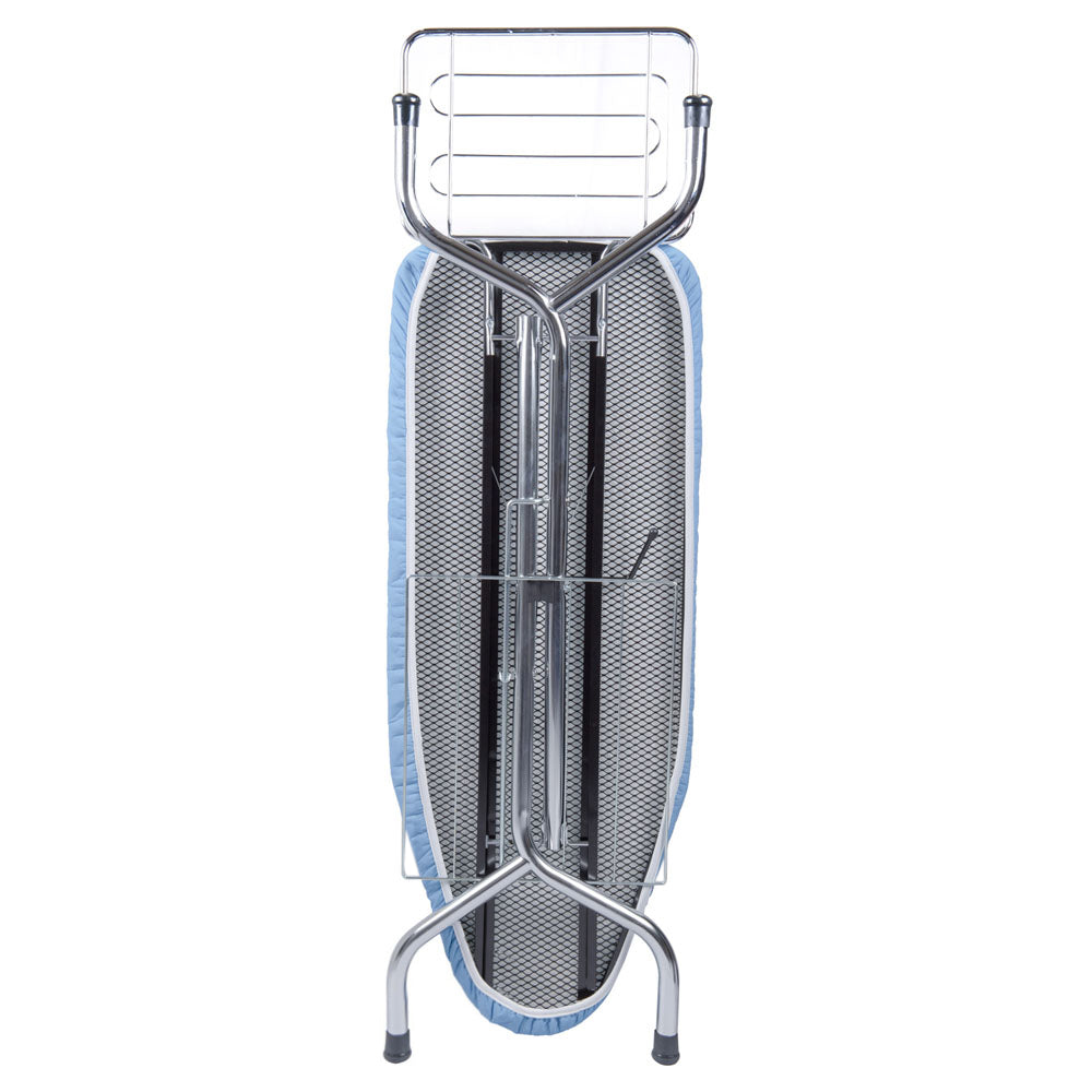 Larghi sostegni in tubo cromato di 32 mm di diametro conferiscono un’ottima stabilità al piano da stiro ma allo stesso tempo conferiscono leggerezza, praticità di chiusura e semplicità di spostamento.