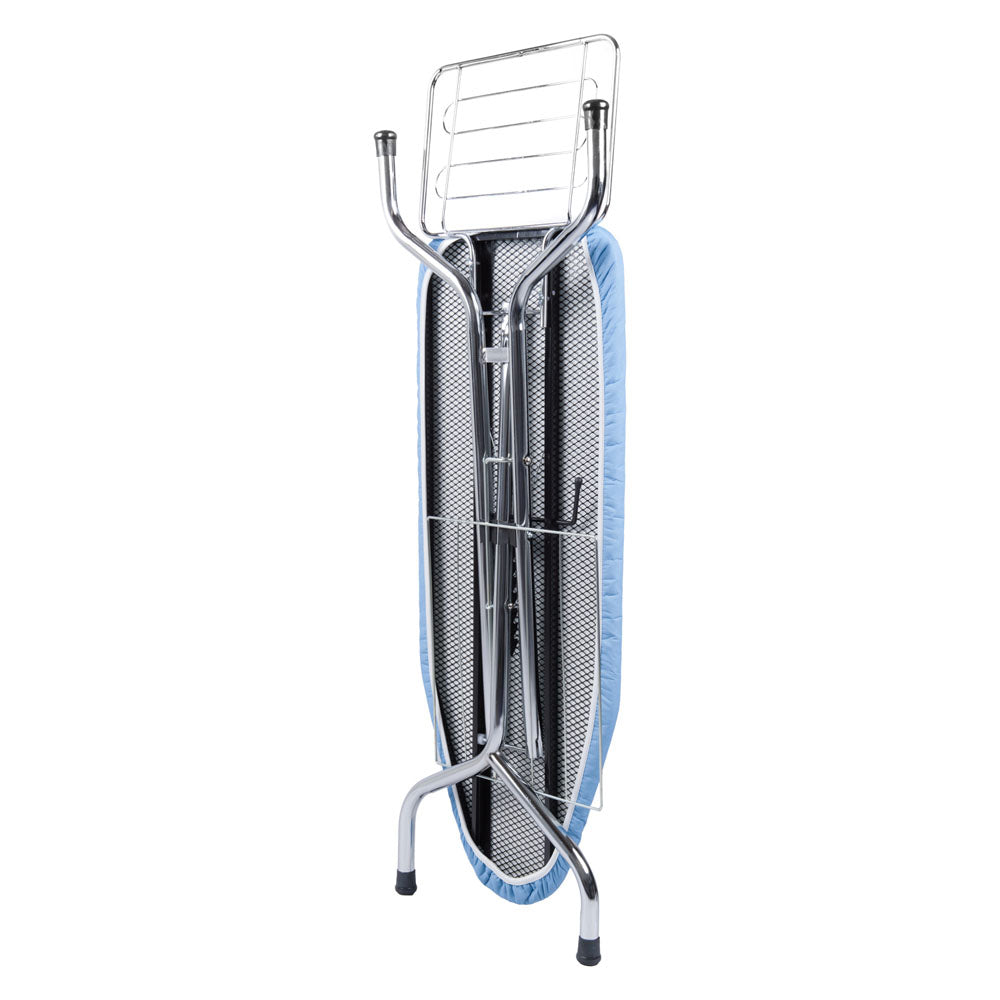 Larghi sostegni in tubo cromato di 32 m di diametro conferiscono un’ottima stabilità al piano da stiro ma allo stesso tempo conferiscono leggerezza, praticità di chiusura e semplicità di spostamento: questa asse da stiro presenta, infatti, un doppio tubolare nella gamba di appoggio posteriore.