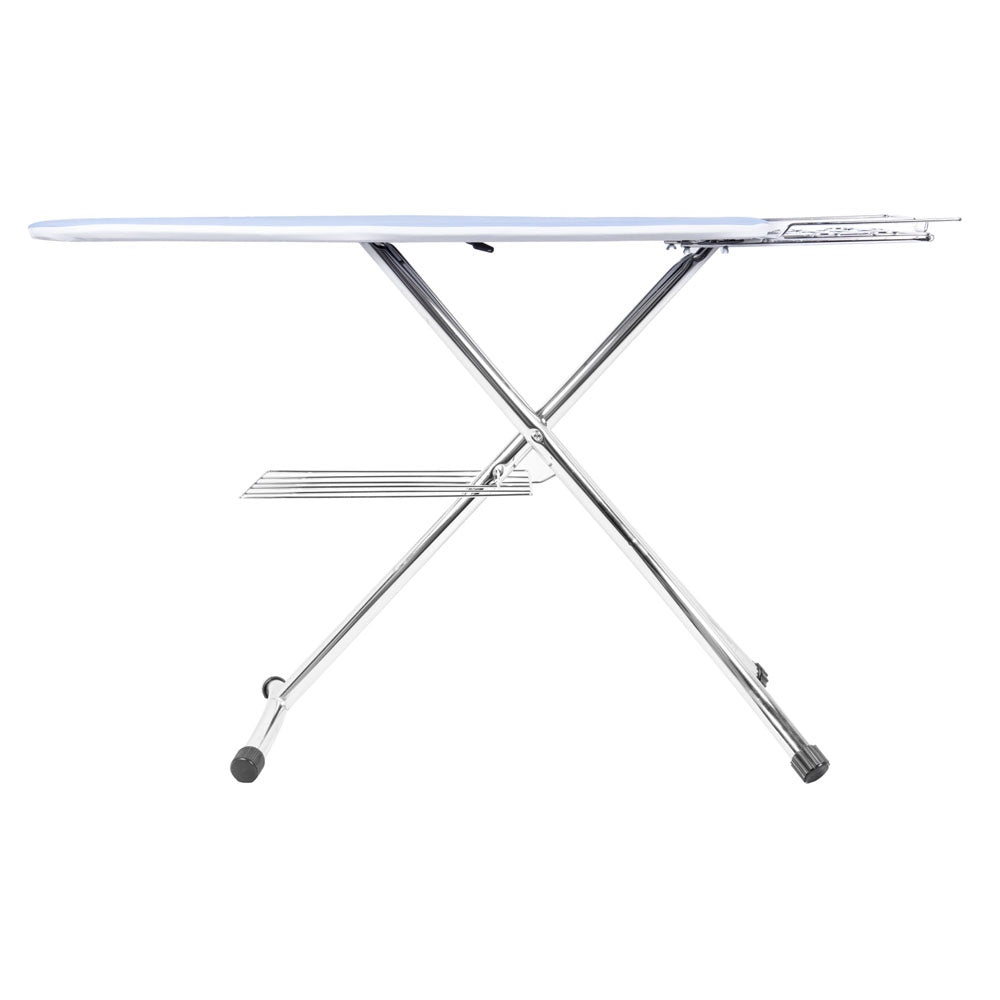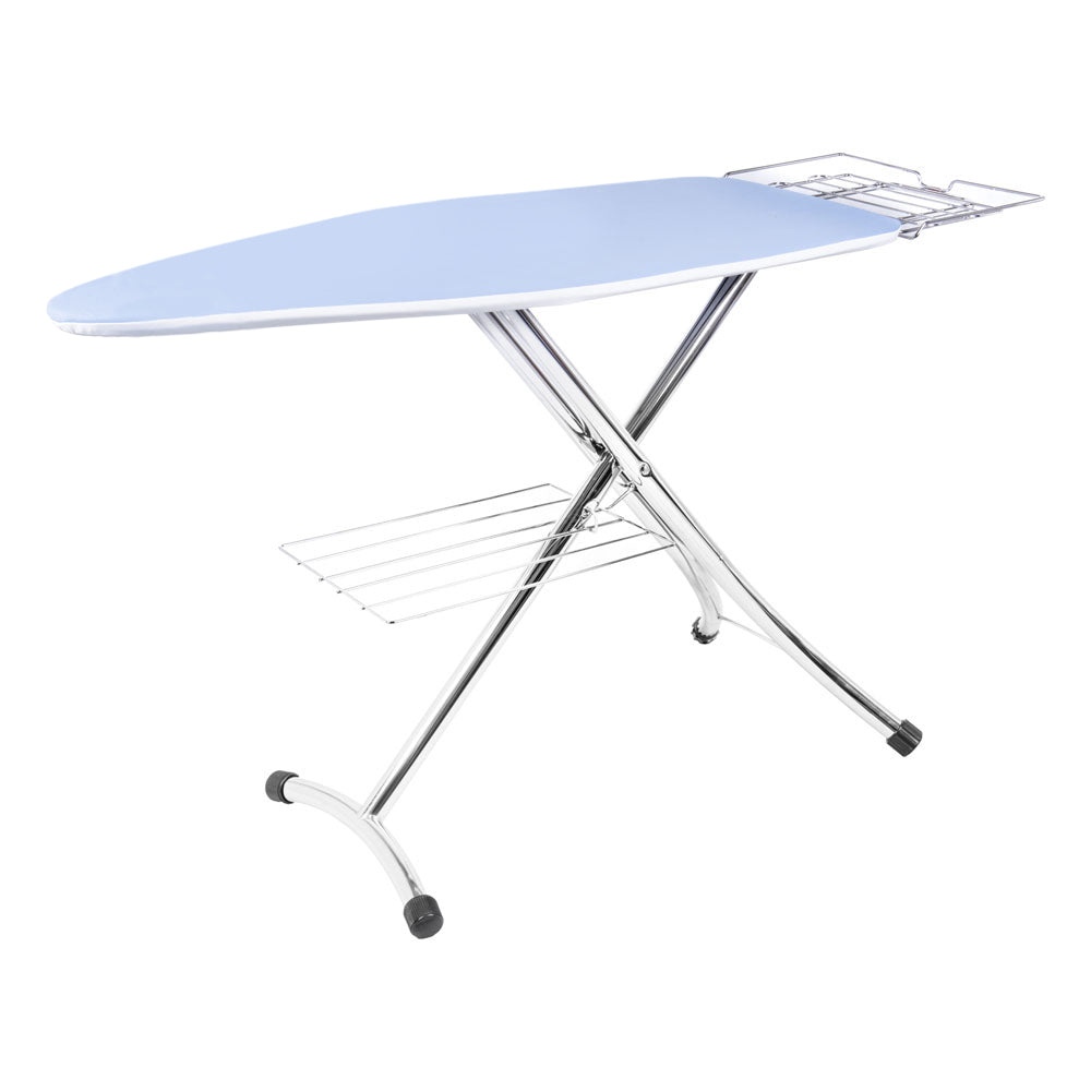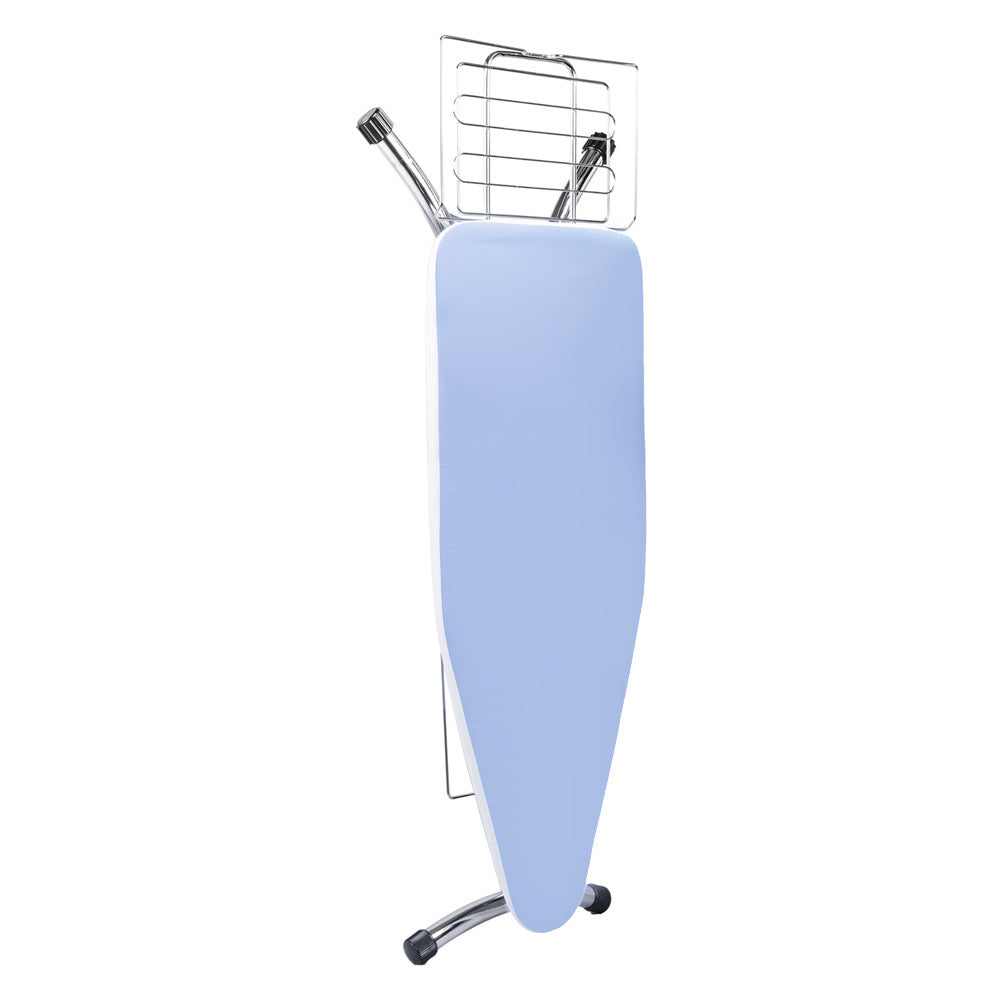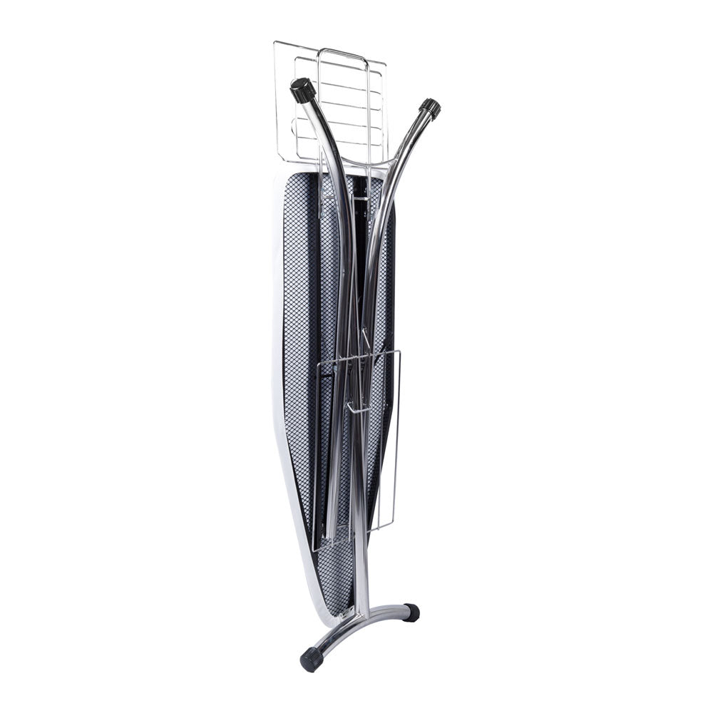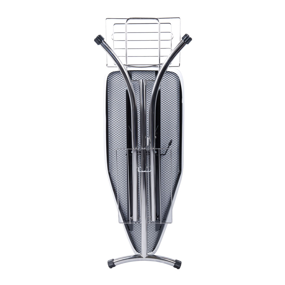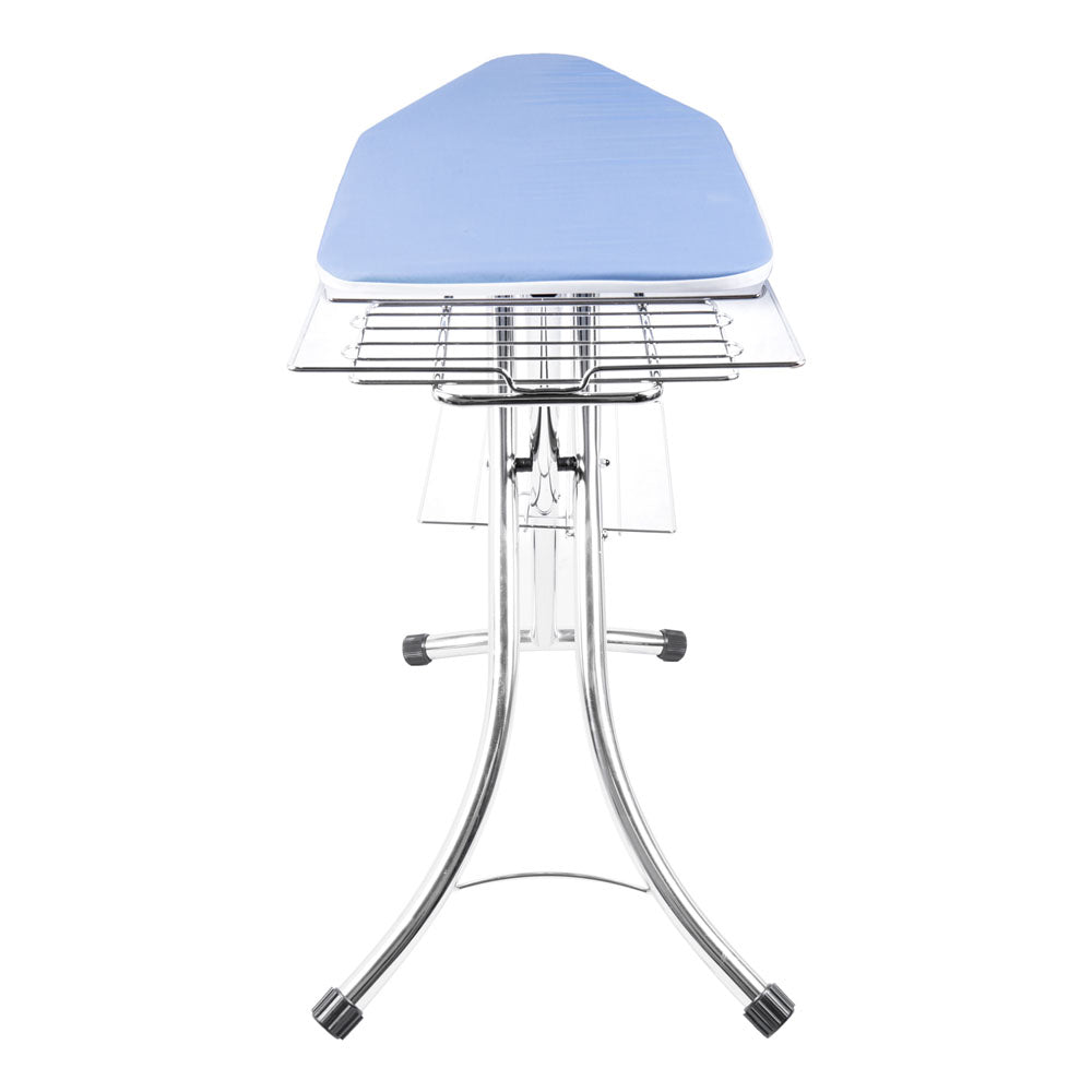 Larghi sostegni in tubo cromato di 40 mm di diametro conferiscono un’ottima stabilità al piano da stiro ma allo stesso tempo conferiscono leggerezza, praticità di chiusura e semplicità di spostamento: questa asse da stiro presenta, infatti, un doppio tubolare nella gamba di appoggio posteriore.
