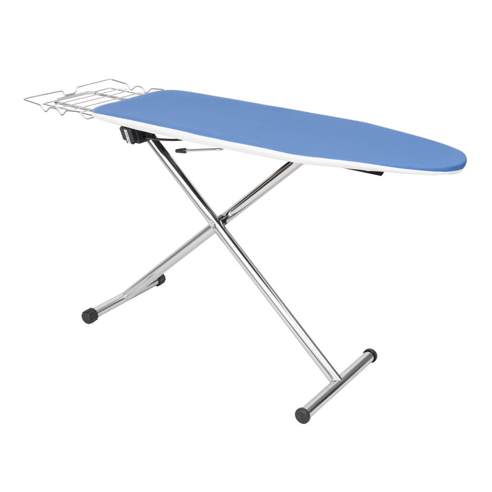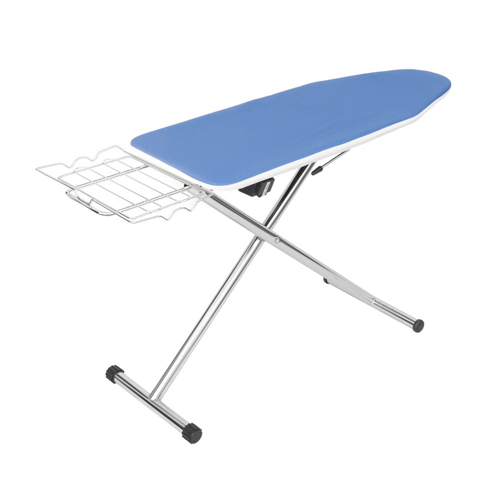 Larghi sostegni in tubo cromato di 32 millimetri di diametro attribuiscono un’ottima stabilità al piano da stiro e, allo stesso tempo, gli conferiscono leggerezza, praticità di chiusura e semplicità di spostamento.