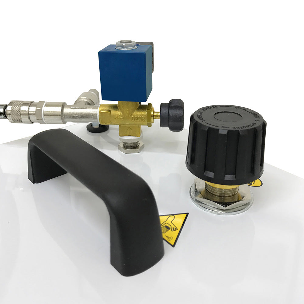 Tutti i componenti come il termostato, l'elettrovalvola, il pressostato e il tappo di chiusura con valvola di sicurezza controllano automaticamente il perfetto funzionamento del generatore di vapore garantendo la massima efficienza e l'ottima qualità del vapore.