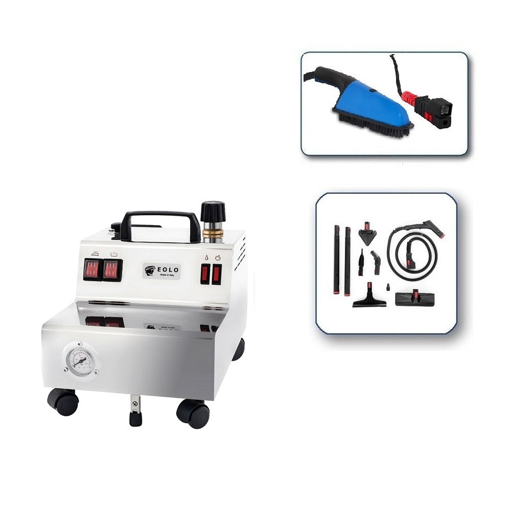 EOLO Pulitore GV05 SB200 Professionale a Vapore Sistemi di Pulizia Spazzola Sanificante 180°C Vaporetto Disinfetta Sanifica Casa Ambienti Tessuti Pelle LavaPavimenti Materassi Tappezzeria Anticalcare Made in Italy Garanzia 5 anni Efficienza A++