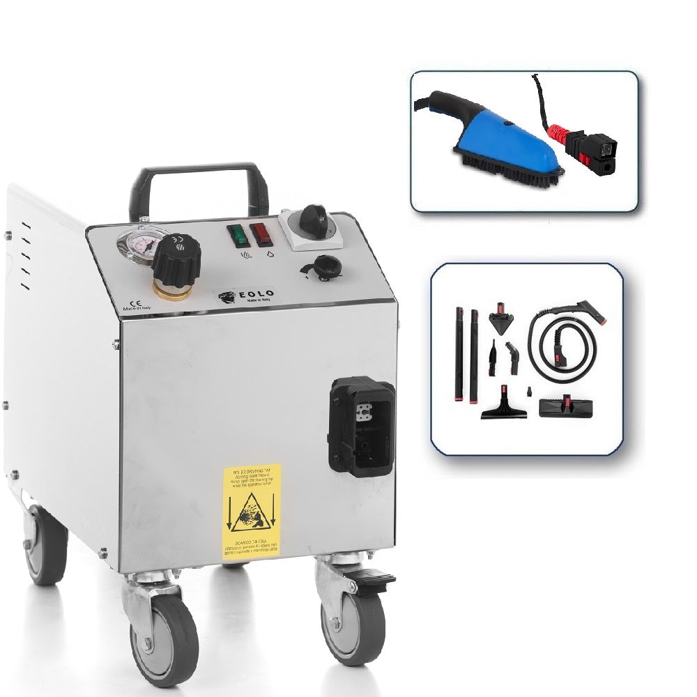 EOLO Pulitrice a Vapore LP01 SB200 RA Secco Saturo Spazzola Sanificante Insetticida Cimici Uova Parassiti Germi Batteri Pulitore Professionale Pulizia Sanificazione Letti Materassi Tessuti Tappezzeria Made in Italy Garanzia 5 Anni Efficienza A++
