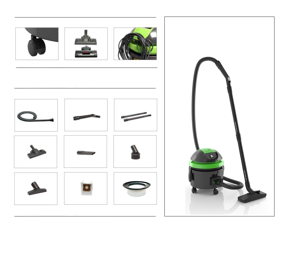 Aspirapolvere ad alte prestazioni, silenzioso ed a risparmio energetico dotato di kit accessori adatto ad ogni esigenza di pulizia.