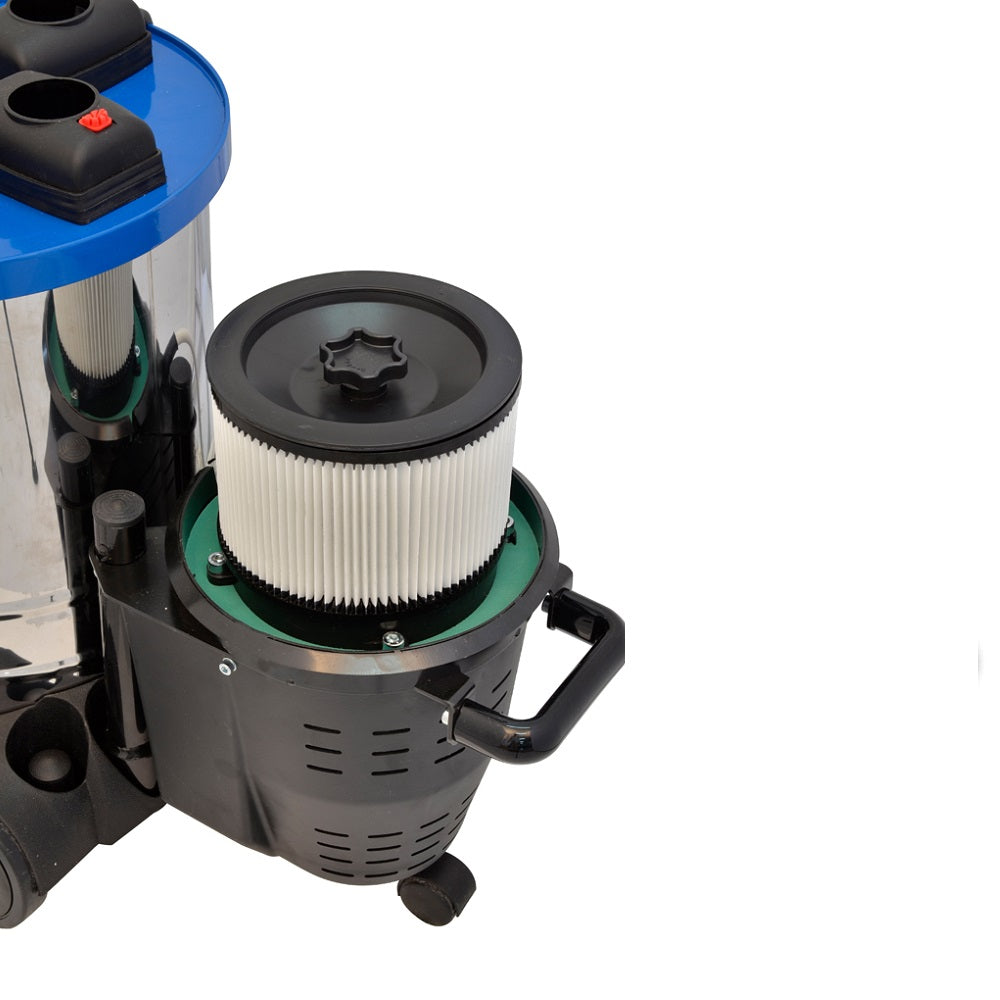 LP35 può aspirare grandi quantità di polvere fino a riempire il fusto senza dover pulire continuamente a mano i filtri come nei normali aspirapolveri.