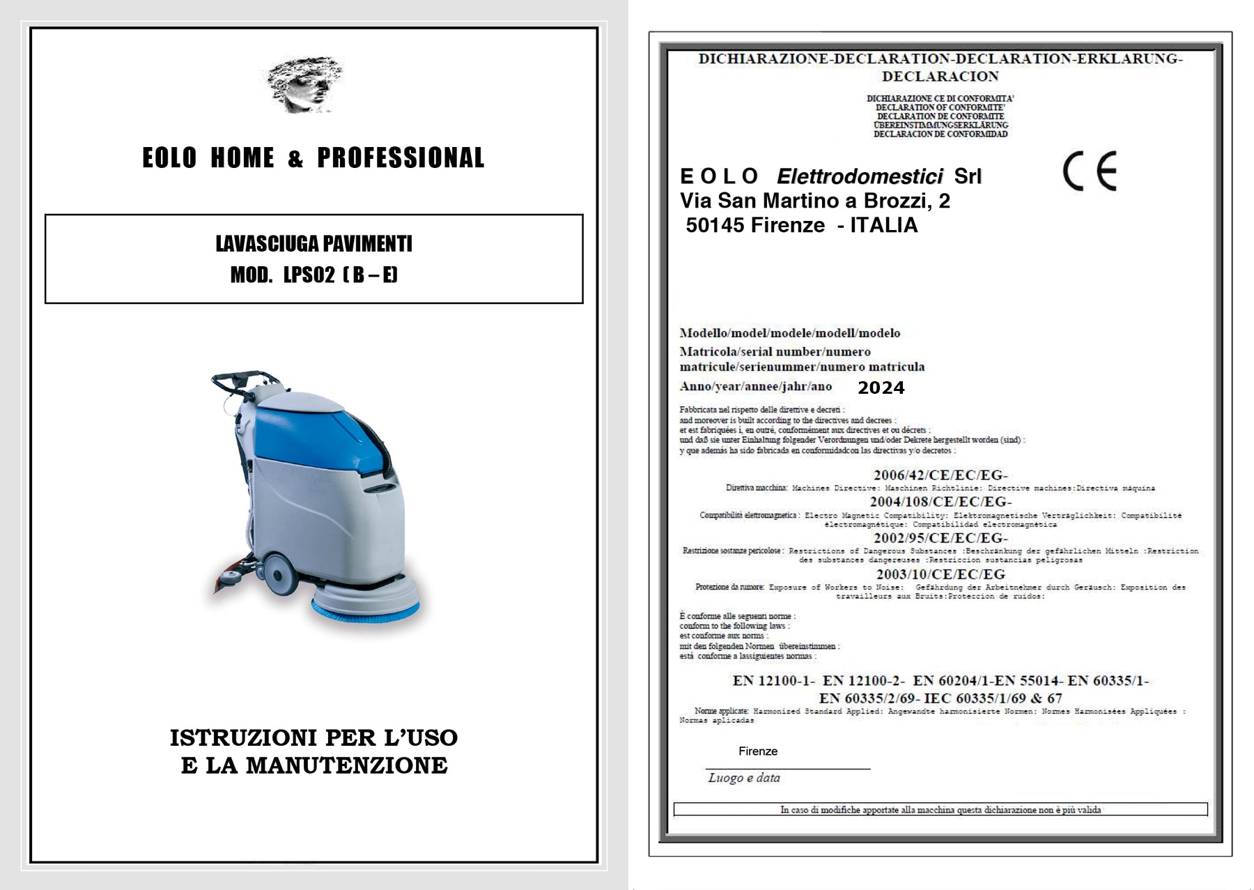 Lavasciuga professionale uomo a terra, modello LPS02 E