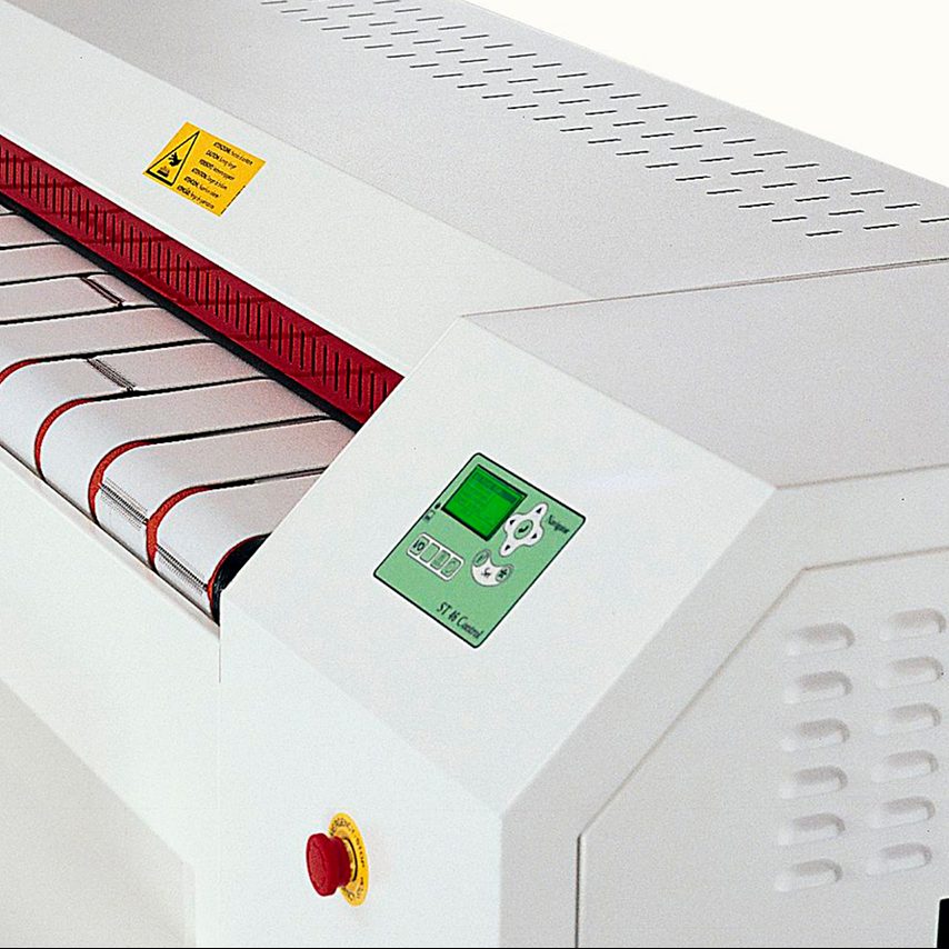Stiratrice a rullo di grandi dimensioni dotata di un rullo di 250 cm di lunghezza ed un diametro 40 cm, sistema di regolazione della pressione del rullo per ottimizzare la qualità di stiro in ogni situazione (pieghe e tessuti difficili), motore di aspirazione e sistema di controllo elettronico che consente di modulare la potenza di aspirazione, creare o personalizzare i programmi di stiratura.