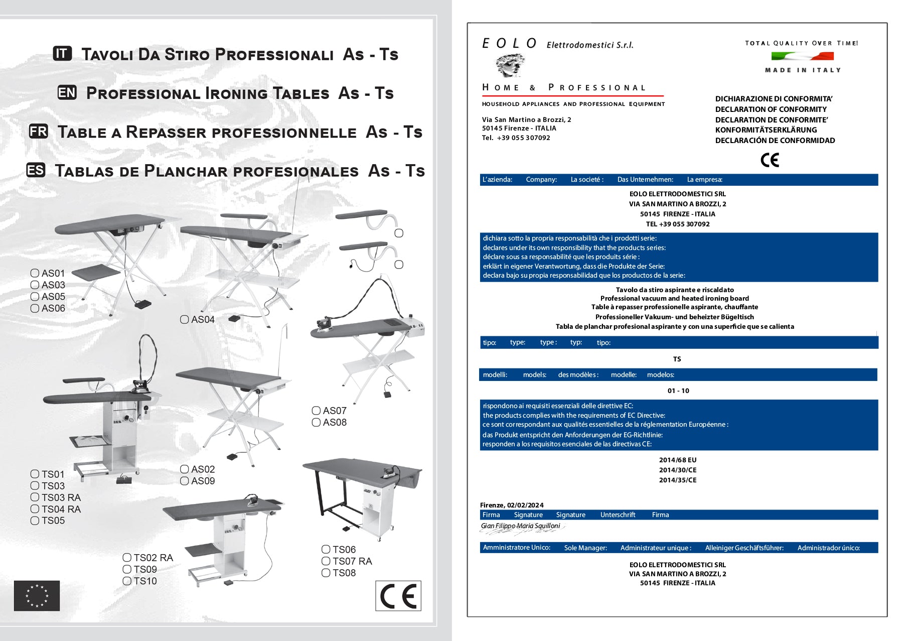Tavolo da stiro professionale con Caldaia e Ferro da stiro Motore aspirante Piano riscaldato con termostato TS03 RA Classe Energetica A++ Made in Italy Garanzia 5 anni